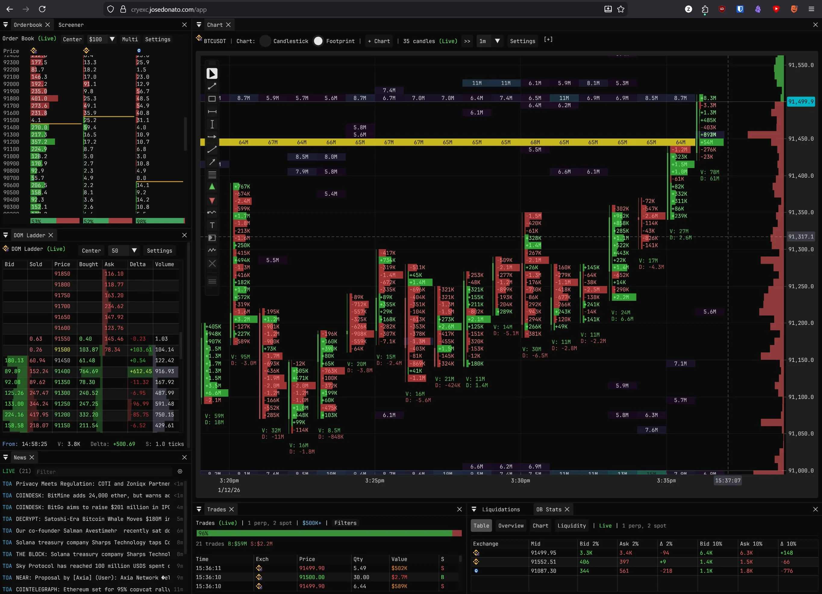 Professional crypto orderflow terminal — footprint charts, multi-exchange orderbook, live heatmap, TPO, whale tracking, options flow, and 20+ analytics views. All in your browser. Free.